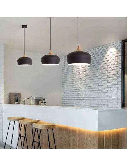 | Lampa wykonana jest głównie z aluminium. Drewniany akcent nadaje lampie wyjątkowego klimatu, który wpasuje się w niemal każdą aranżację. Prosty styl sprawia, że lampa pasować będzie do każdego pomieszczenia – zarówno do kuchni, salonu czy pokoju dziecięcego. |