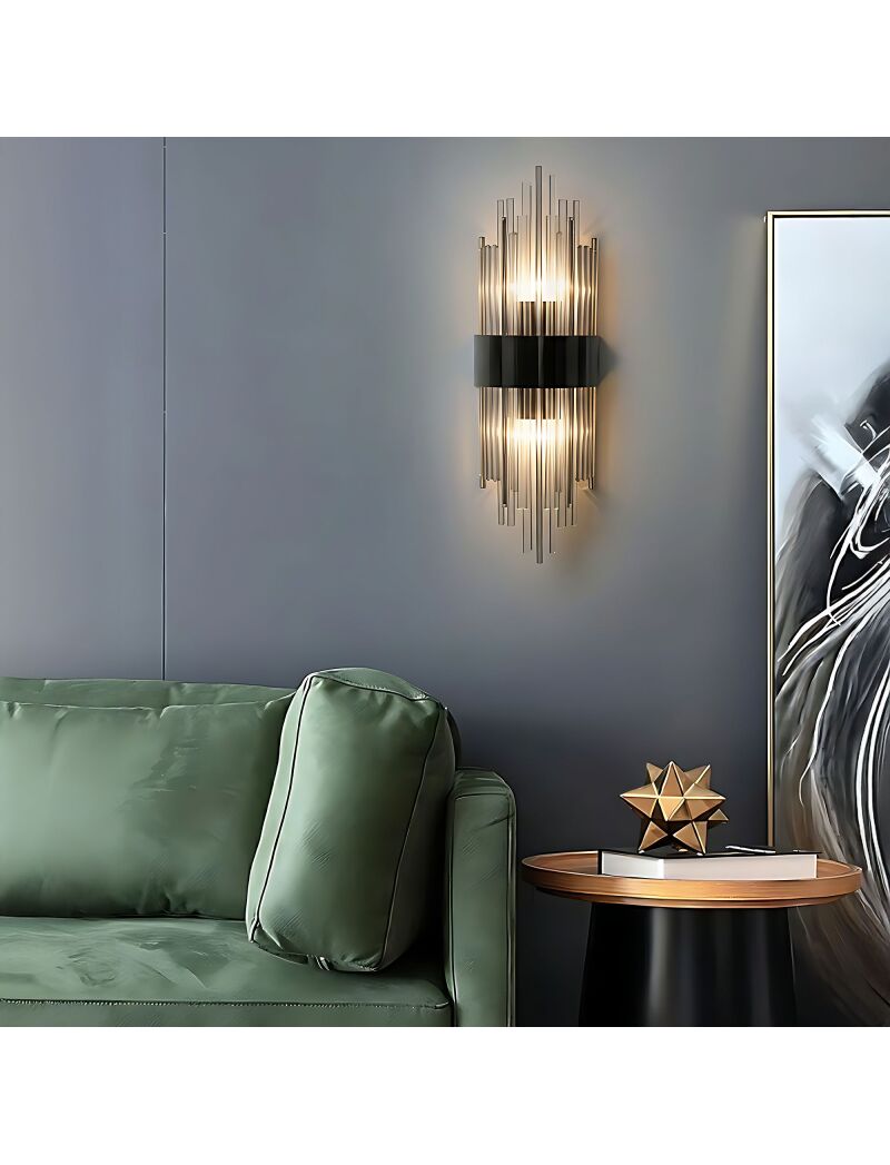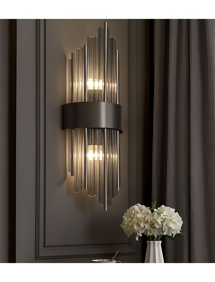 | Wprowadź do swojego wnętrza odrobinę luksusu dzięki eleganckiemu kinkietowi ściennemu w stylu glamour. Stelaż w kolorze polerowanego czarnego nadaje lampie prestiżowego charakteru, a klosz złożony z transparentnych oraz zabarwionych na kolor szary szklanych rurek subtelnie rozprasza światło, tworząc przyjemny i nastrojowy efekt. Kinkiet doskonale sprawdzi się zarówno w salonie, sypialni, jak i korytarzu, dodając wnętrzu elegancji i wyjątkowego klimatu.