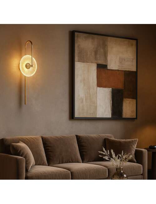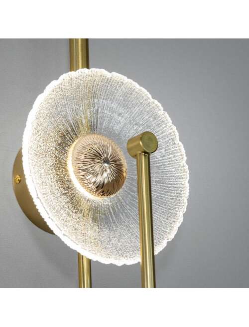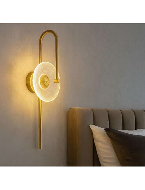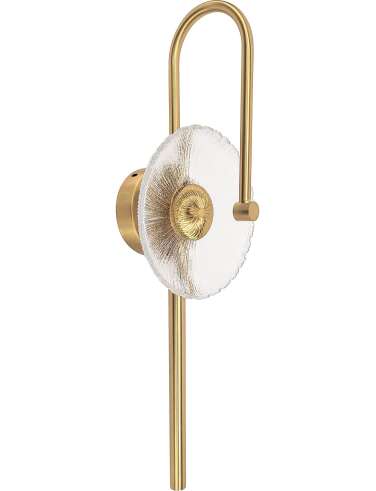 Nowoczesny kinkiet Led w złotym szczotkowanym kolorze to designerski akcent o dekoracyjnym charakterze, który łączy estetykę ze światłem nastrojowym. Ozdobna forma lampy opiera się na giętym, złotym stelażu i kloszu z przezroczystego szkła o teksturowanej powierzchni. Dzięki temu kinkiet tworzy wyjątkowy efekt świetlny, subtelnie rozpraszając ciepłą barwę 3000 K. Model ten świetnie odnajdzie się zarówno w aranżacjach nowoczesnych, jak i glamour czy art déco – jako oświetlenie boczne w salonie, przedpokoju, sypialni czy przestrzeni komercyjnej. Połączenie złotego metalu i transparentnego szkła sprawia, że lampa świetnie wpisuje się w przestrzenie nowoczesne, glamour i klasyczne.