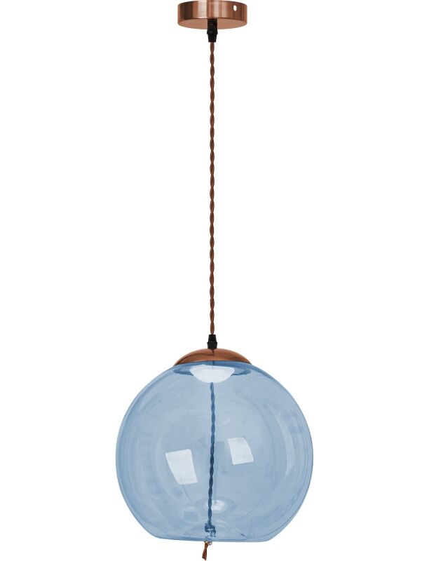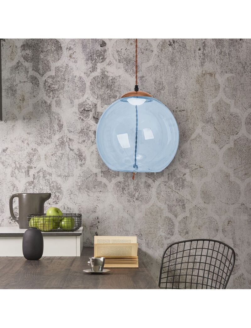 Lampa wykonana jest ze szkła i metalu – w kloszu przeważa szkło zaś maskownica jest w całości z metalu. Lampa posiada zintegrowane źródło led o mocy 5W. Długość kabla można dopasować odpowiednio do pomieszczenia bądź aranżacji – wszystko zależy od Państwa wyobraźni.