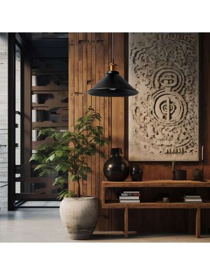 Lampa została wykonana z metalu wraz z maskownicą przy suficie. Lampa posiada tradycyjny gwint E27 stosowany w większości lamp.