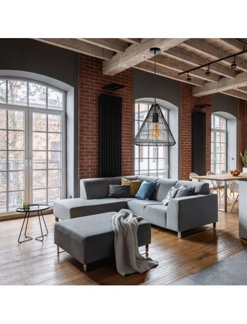| Nowoczesna lampa sufitowa, wykonana z najwyższą dbałością o szczegóły i detale. Styl geometryczny w jakim została stworzona, sprawdzi się idealnie w nowoczesnych, minimalistycznych wnętrzach typu loft lub industrial. Do produkcji lampy użyto stali najlepszego gatunku, która w kolejnej fazie produkcji została kilkakrotnie pokryta warstwą antystatycznej emalii. Pozwoliło to na uzyskanie idealnej powierzchni, odpornej na zarysowania oraz wszelkie otarcia czy uszkodzenia mechaniczne. | ||||||||||||||||
