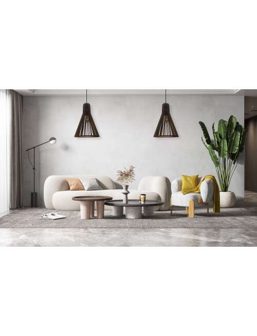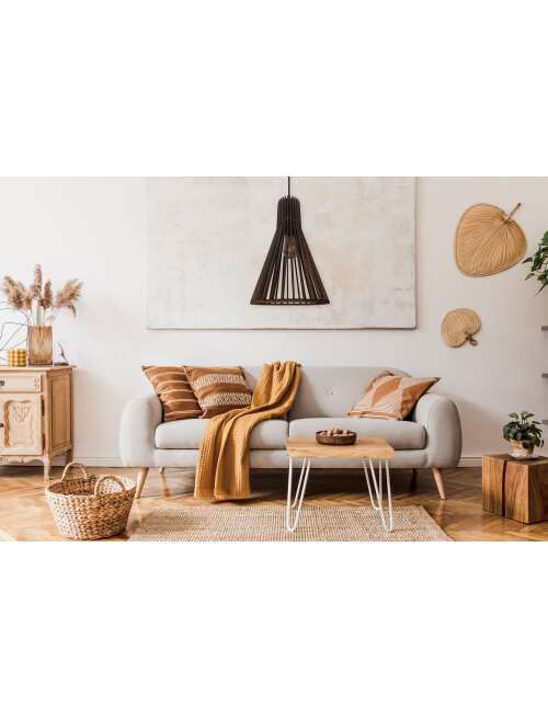 Lampa wykonana jest z listewek bambusowych natomiast maskownica z metalu. Unikalne połączenie naturalnych materiałów oraz subtelnego designu przyciąga uwagę i tworzy przytulną atmosferę. Wyjątkowy kształt doskonale sprawdzi się w każdym pomieszczeniu niezależnie od stylu jego wykończenia. Lampa do samodzielnego montażu. |