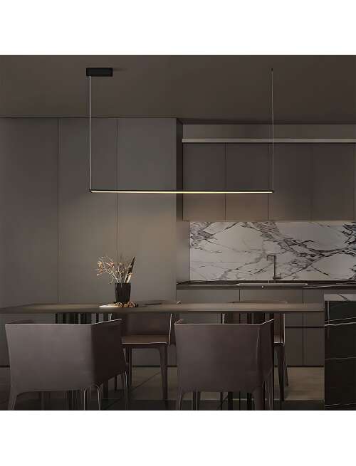 Nowoczesna lampa wisząca LED o długości 120 cm, wykonana z aluminium i silikonu, emituje ciepłe światło 3000 K przy mocy 15 W. Idealnie dopełni wystrój salonu, jadalni lub sypialni.