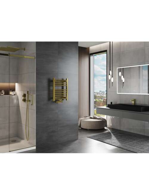 Dane techniczne: Wysokość: 500 mm Szerokość: 400 mm Głębokość: 30 mm Rozstaw podłączenia: - 35 cm (dolne) lub 5 cm (środkowe) Kolor: Złoty Materiał: Stal Waga: 3,13 kg Reakcja na ogień: A1 Temperatura pracy: max 95 °C Maksymalne ciśnienie robocze: 0,6 Mpa Moc grzewcza: - 75/65/20 °C - 141 W Przyłącza: - 2xG ½″ środkowe - 4xG ½″ od góry oraz dołu z prawej lub lewej strony Możliwość zamontowania grzałki Wysokiej jakości, trwała powłoka lakiernicza odporna na korozję W komplecie: zawieszenia, zestaw montażowy, korki zaślepiające oraz odpowietrznik |