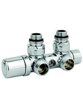 Carlo Poletti Rad. dubultbloks Twinvalve Thermo 1/2` x 24-19, 90°, balts (50mm)