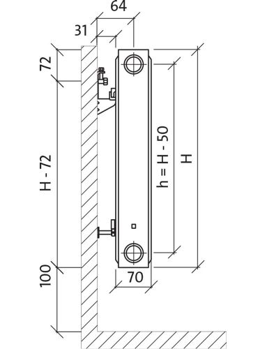 Purmo Tērauda paneļu radiators Purmo Compact Tips 21 H600/L600 - gab.