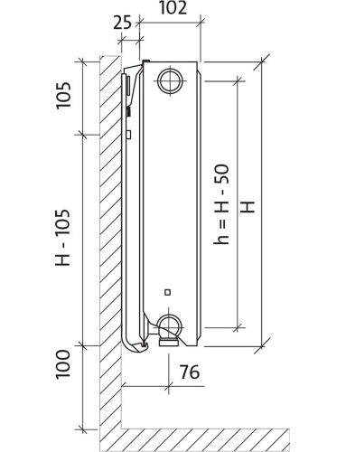 PURMO Ventil Compact (CV) paneļu radiatori ar profilētiem apsildes paneļiem un konvekcijas elementiem ir aprīkoti ar sānu pārsegiem un virsējo režģa tipa pārsegu. Divas apakšējās un četras sānu savienojumu atveres ar iekšējo vītni G 1/2' ļauj veikt pieslēgumu gan apakšpusē, gan sānos. Radiators ir aprīkots arī ar iebūvētu termostatisko Oventrop vārstu iepriekšējai iestatīšanai.