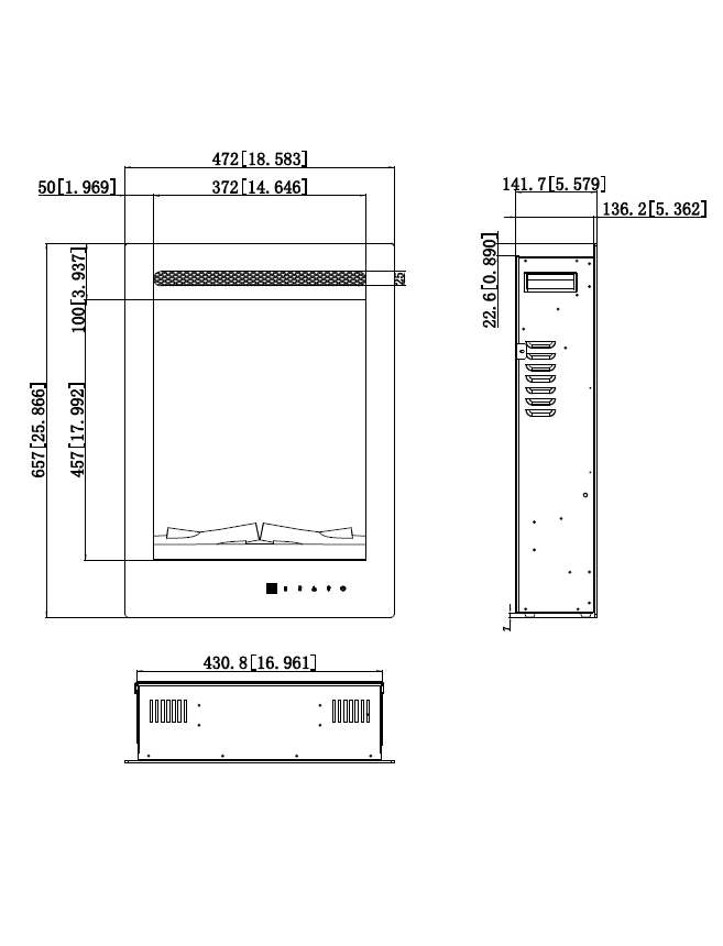 Elektriskais kamins AFLAMO LED 50 PRO Iebūvējamais