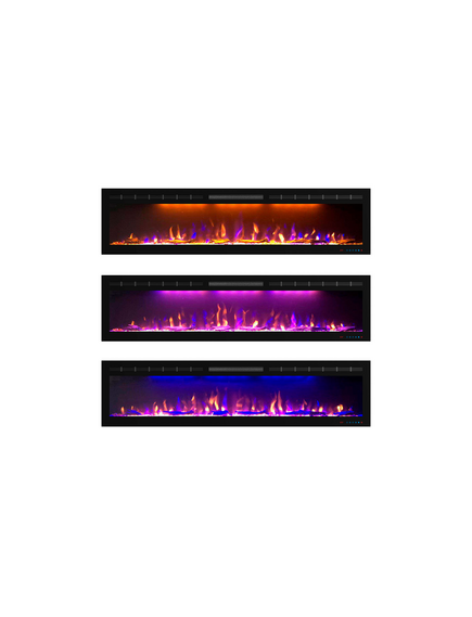 Elektriskajam kamīnam ir funkcija, kas ļauj izvēlēties liesmas krāsu - dzeltenu, zilu, violetu. Kamīnam ir arī augšējā apgaismojuma funkcija, kas skaita trīs krāsas.