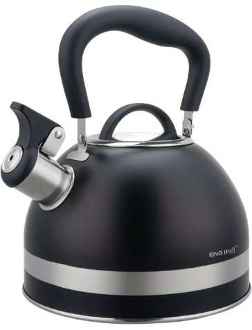 Tējkanna ar svilpi, 1,8L, nerūsējošais tērauds, melns, KINGHoff. Augstas kvalitātes nerūsējošais tērauds, izturīgs pret rūsēšanu un skrāpējumiem. Savietojams ar visa veida krāsnīm. Saliekams rokturis – ergonomisks, ērts un vietu taupošs. Skaļš svilpiens, kas norāda, ka ūdens vārās. |