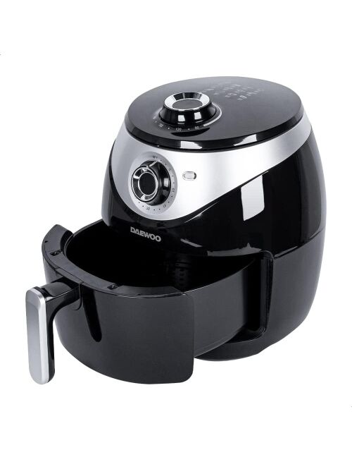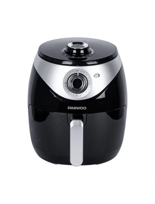 | Karstā gaisa fritieris, 4.6L, 1500W, DAF 1859, Daewoo. Tilpums 4.6L – metāla panna ar nelīpošu pārklājumu un grilu. 30 minūšu taimeris. Temperatūras kontrole 90–200°C. Ātrās gaisa cirkulācijas sistēma ātrākai gatavošanai un enerģijas taupīšanai. Veselīga cepšana bez eļļas – līdz pat 80% mazāk tauku. Daļas, kuras var mazgāt trauku mazgājamajā mašīnā. Izturīgs nerūsējošā tērauda sildelements. Neslīdošas kājiņas. Aizsardzība pret pārkaršanu. Rokturi ar auksto pieskārienu. Barošanas spriegums 220–240V ~50/60Hz, 1500W. |