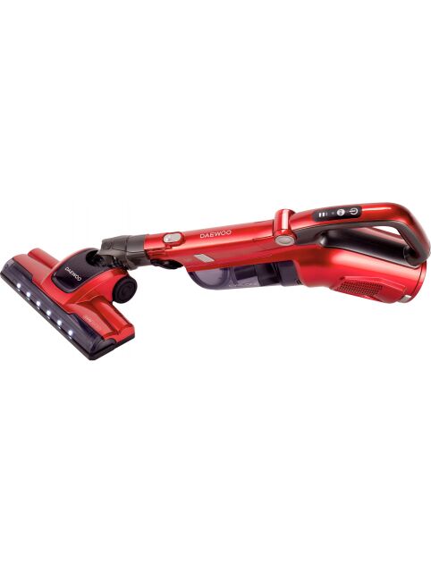 | Daewoo RSH 310GR 1 vertikālais putekļsūcējs ar 130 W jaudu, 0,6 L putekļu tvertni un HEPA filtru, aprīkots ar izturīgu, noņemamu litija jonu akumulatoru, kas nodrošina līdz 30 minūtēm darbības, sarkanā krāsā. Tas nodrošina spēcīgu sūkšanas veiktspēju un ir aprīkots ar viegli iztukšojamu putekļu tvertni un 2-in-1 motorizētu birsti efektīvai dažādu virsmu tīrīšanai. |