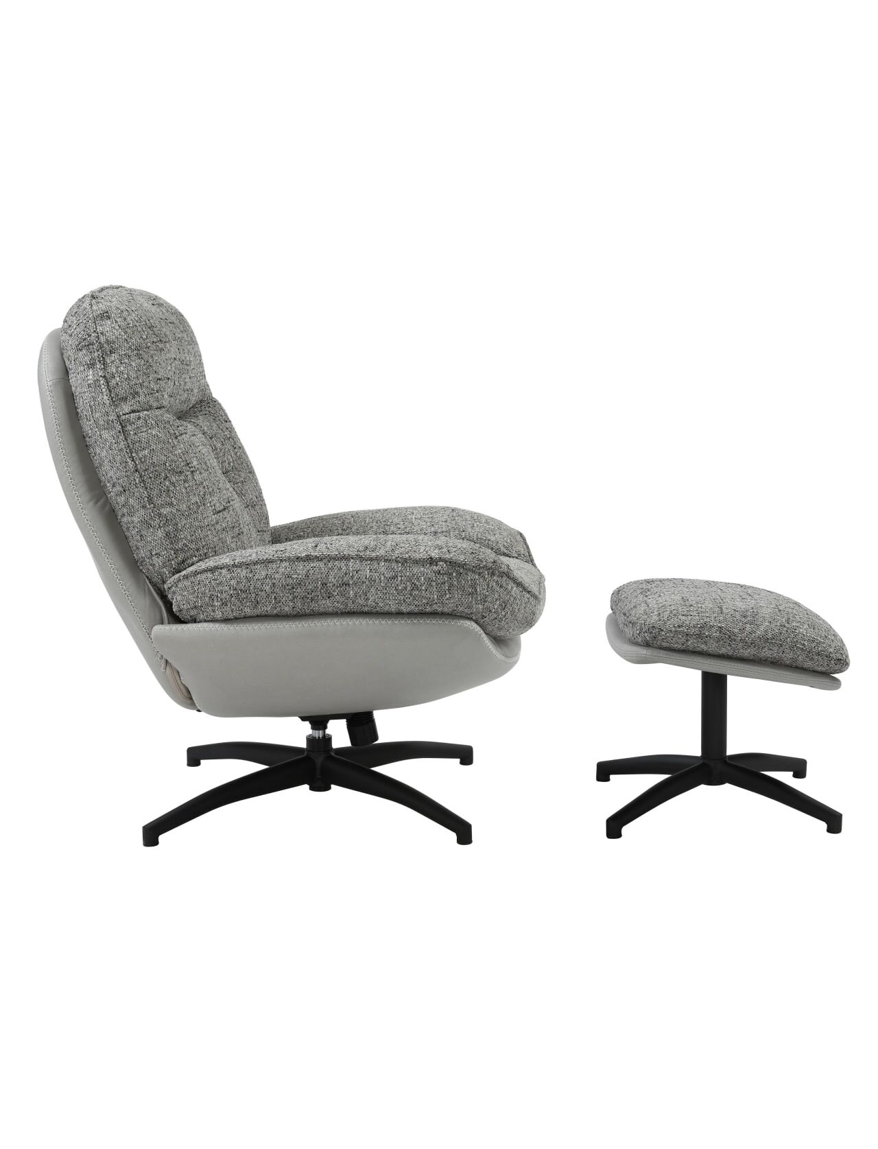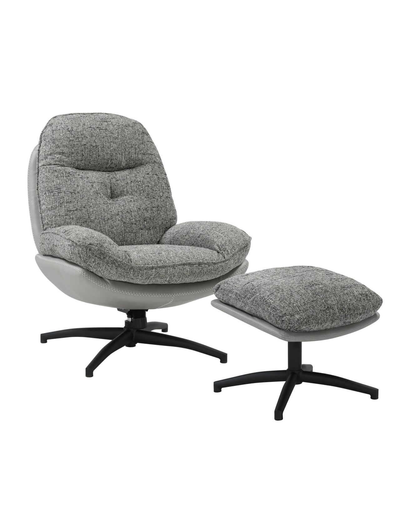 Krēsls ROY Grey Chenille Armchair w/pouf