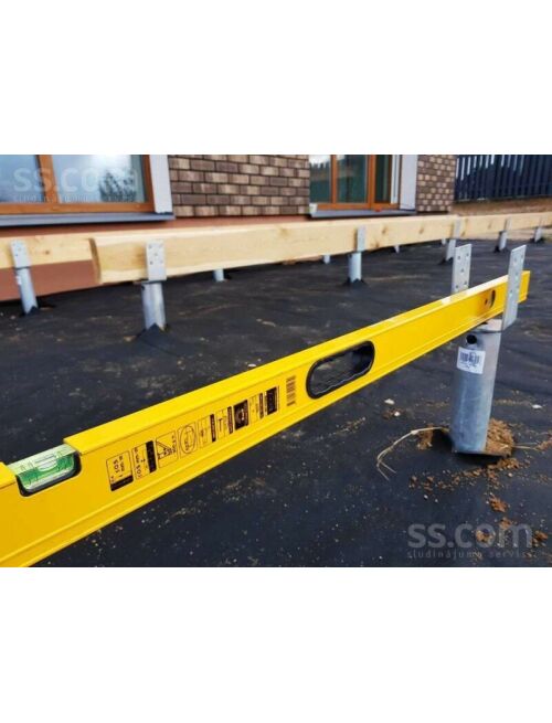 Terasēm Mazajai arhitektūrai Koka konstrukcijas Saules paneļiem Takām Nojumēm Žogiem Siltumnīcas Piestātnēm Ceļa zīmēm Rotaļu laukumiem