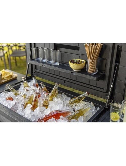 Pateicoties šim apbrīnojamajam dārza bāram katra tikšanās brīvā dabā pārvērtīsies par īstu kokteiļu ballīti : Piepildiet kasti ar ledu ielieciet dažus atspirdzinošus dzērienus ielieciet gardu jūras velšu ēdienu vegānas uzkodas vai klasiskus grilētus ēdienus un iespējams svaigus augļus un tas ir. darīts! To visu var pagatavot virtuvē un pēc tam pasniegt viesiem no oriģinālā un funkcionālā bāra. Izmēri: 955 x 584 x 898 slēgts |