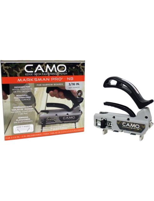 Profesionāls terases dēļu ieklāšanas instruments "CAMO Marksman". Šī patentētā iekārta virza koka skrūves īpašā leņķī pret terases dēļu malām izveidojot 5 mm atstarpi starp dēļiem Modelis: "CAMO PRONB 5" |