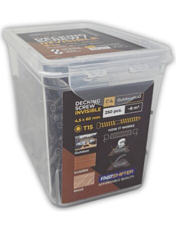 Pielietojuma jomas: Paredzēts terašu grīdas dēļu un citu koka konstrukciju uzstādīšanai ārpus telpām īpaši vietās kur nepieciešama estētiska apdare bez redzamām koka skrūvēm.