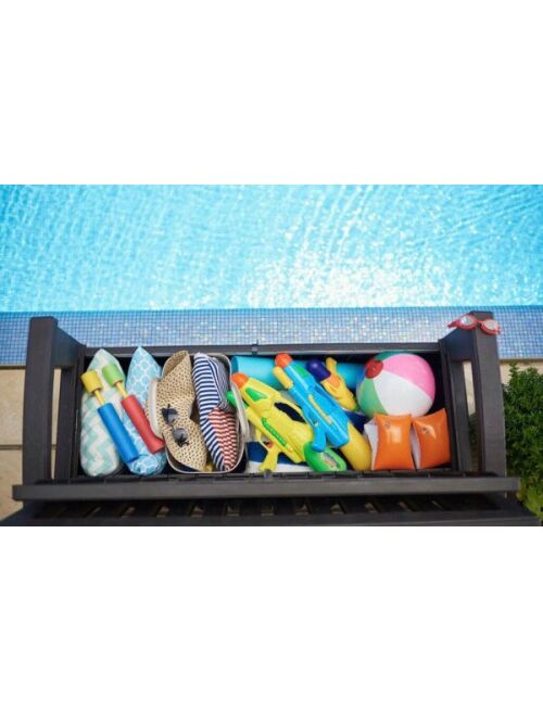 Stilīgs sols vai funkcionāla glabāšanas kaste? Kāpēc ne 2 vienā? PATIO BENCH uzglabāšanas kaste ir ģeniāls risinājums tiem kas vēlas savu dārzu sakārtot ne vien eleganti bet arī praktiski. Pateicoties ietilpībai glabāšanas kaste būs piemērota segā un spilveniem un pat atpūtas aprīkojumam. Turklāt virsmas faktūra atgādina dabisko koku kas lieliski izceļ jebkura dārza šarmu un stilu. Izmēri:1386 x 635 x 88cm Iepakojuma izmērs:131 x 75 x 185cm Tilpums:227L Krāsa:Brūna |