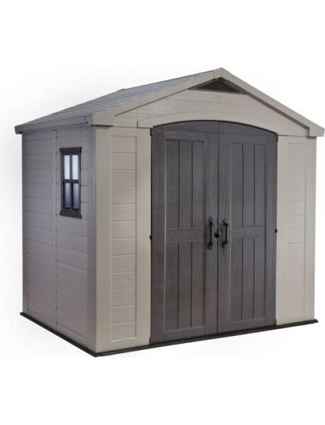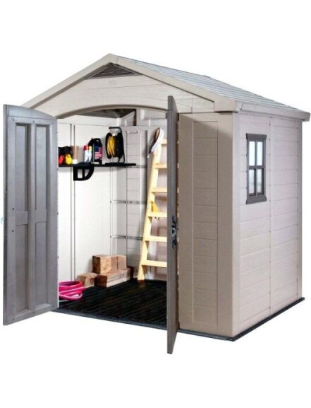 Funkcionālā FACTOR 8x6 mantu glabātuve iepriecinās pat visprasīgākos lietotājus. Izturīgs tērauda rāmis divviru durvis un papildu apgaismojums izmantojot iebūvēto logu ir produkta neapšaubāmas priekšrocības. Mantu glabātuves iekšējo telpu var iekārtot optimālākā veidā tai var uzstādīt plauktus un pakaramos. Izgatavots no augstas kvalitātes plastmasas materiāliem kam nav nepieciešama apkope un tas nav pakļauts rūsēšanai un materiāla sabojāšanās procesiem. Piemērots visiem laika apstākļiem izturīgs pret rūsu lobīšanos puvi vai trūdēšanu. Ventilācija nodrošina patīkamu vidi kamēr logs un jumta kore ar caurspīdīgu plastikātu nodrošina dabisku gaismu. Dubultās durvis un pamatīgā grīda ļauj ērti uzglabāt un piekļūt pat smagiem un lieliem priekšmetiem. Mantu glabātuvei ir pietiekami augsti griesti lai pieaugušais varētu ērti pārvietoties. Viegli montējams izmantojot tikai mājsaimniecības instrumentus. Izgatavots no laika apstākļiem izturīga sveķa kompozītmateriāla ar tērauda stiprinājumiem. Factor 8x6 ir izturīga glabātuve kas nodrošina daudz vietas uzglabāšanai un ir aprīkots ar grīdas paneli platām dubultdurvīm iebūvētu ventilāciju logu un jumta logu kas nodrošina daudz dabiskās gaismas. Īpašības: |