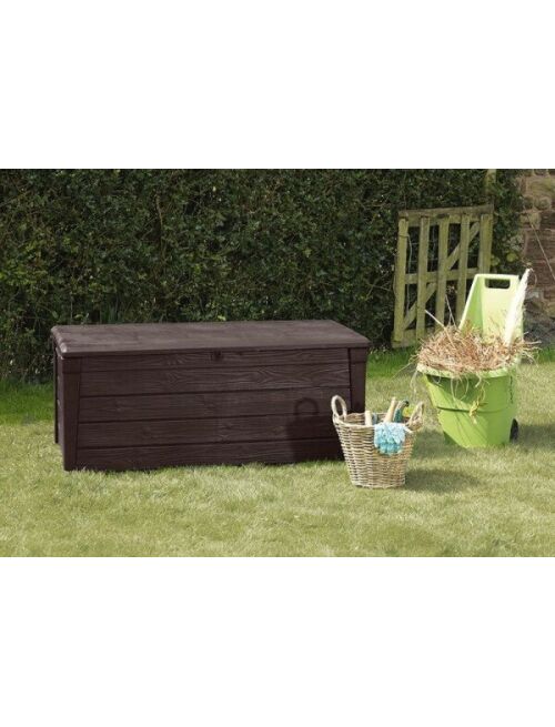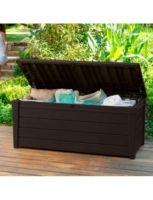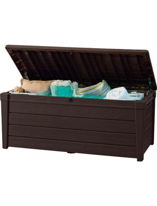 Ietilpīgā BRIGHTWOOD mantu kaste būs piemērota visiem svarīgākajiem dārza instrumentiem kā arī spilveniem plediem segām vai šūpuļtīklam. Mantu kastes virsmas faktūra atgādina koku kas ļauj mēbelei lieliski iederēties dabiskajā vidē. Izgatavots no augstākās kvalitātes plastmasas materiāliem tas efektīvi aizsargā novietotās lietas pret mitrumu netīrumiem un UV stariem. Mehānisms kas atvieglo atvēršanu ir produkta neapšaubāma priekšrocība. Izturības dēļ mantu kaste var kalpot arī kā sēdvieta 2 cilvēkiem. Izmēri:145 x 697 x 603cm Iepakojuma izmērs:147 x 735 x 15cm Tilpums:455L Krāsa:Brūna |