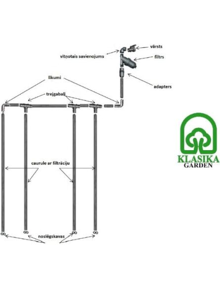 Laistīšanas sistēma KLASIKA DROP domāta palaišanai no stāvošas ūdens tvertnes mucas bez spiediena. Laistīšanas apūdeņošanas sistēma siltumnīcām tā ir modernākā un tajā pašā laikā vislētākā metode laistīšanai. Uzstādot modernu laistīšanas sistēmu ietaupa ūdeni un darbaspēka izmaksas nodrošinās vienmērīgu augu laistīšanu. Laistīšanas sistēmas plaši izmanto sezonas lauksaimniecības bērnudārzi siltumnīcām ziediem un citu kultūraugu laistīšanai. Ražošana no augstas kvalitātes polietilēna nodrošina augstu produkta izturību pret ultravioletajiem stariem minerālmēsliem un lauksaimniecības ķimikāliju. Mehāniskā izturība un augsta elastība produkta lietošanai ekstremālos ekspluatācijas apstākļos. Katram pilinātājam ir iekšējais filtrs kas kopā ar karstā ūdens plūsmu nodrošina nepārtrauktu tīrīšanu un mazgāšanu. Laistīšana iet tieši uz augu sakņu zonā. Kad apūdeņošanas sistēma ir pielāgota gravitācijas spiedienam ūdens plūst tā ietekmē tikai ar paša svaru. Mūsu apūdeņošanas sistēmas ūdens tvertne ir pietiekama lai palielinātu tikai 1 metru augstumā. Pieejamās laistīšanas sistēmas siltumnīcām 2m 4m 6m 8m 10m un 12m garumiem. Papildus var iegādāties ūdens tvertni no kā palaist ūdeni uz laistīšanas sistēmu un laistīšanas sistēmas taimeri LED100. |