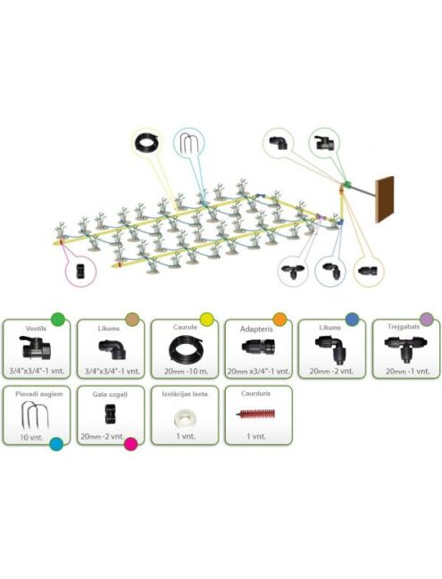 Laistīšanas istēma ir paredzēta lai apūdeņotu līdz 40 augiem. Piemērots siltumnīcās ar kopējo platību 10 m2.