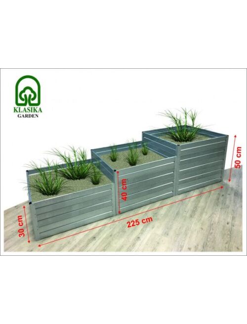 Paaugstinātā dārza dobe trepjveida, cinkota, 225x75 cm, h-50-40-30 cm