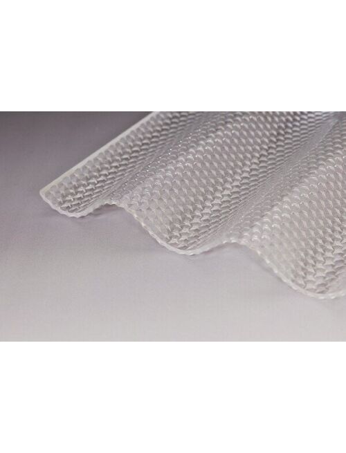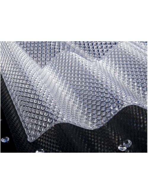 Priekšrocības: Unikāla dimanta struktūras virsma Vertikālā uzstādīšana visā jumta konstrukcijā Lielas platības pārklājums Lieliska ūdens novadīšana Augsta gaismas caurlaidība Aizsardzība pret UV stariem Seguma materiāls ir pārstrādāts Ilgmūžīgs Stingrs Elastīgs Vieglas loksnes Izturīgs pret temperatūras maiņām