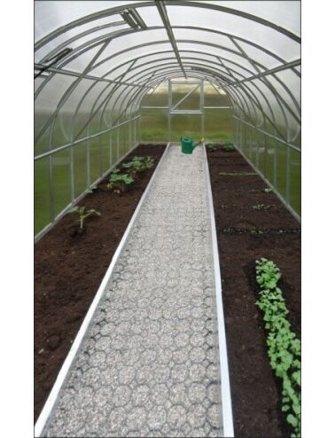 Siltumnīcas ejas atdalītāja komplektā ir 2 cinkota tērauda profili 10cm platumā komplektā ar stiprināšanas leņķiem un skrūvēm ar kuru palīdzību Jūs varēsiet atdalīt siltumnīcas eju no augsnes. Izmērs: 10m Ražoti Lietuvā Papildus eju var aprīkot ar zālāja režģi kas dos estētisku skatu un stingru pamatni ejai. Piemēroti siltumnīcām KLASIKA KLASIKA STANDART KLASIKA TUBE. |