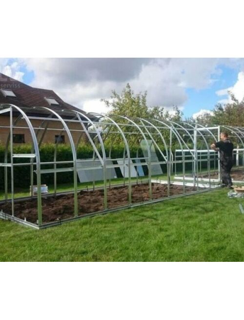 Apraksts:Polikarbonāta siltumnīca KLASIKA Lietuvā ražota ļoti izturīga cinkotu tēraudu profilu siltumnīca garantēs Jums izcilu ražu. Siltumnīca Klasika ir viena no izturīgākajām šāda tipa siltumnīcām. Siltumnīcas Klasika ir plašas kas ļauj vairāk piekļūt saulei un gaismai kas ir viens no svarīgākajiem nosacījumiem labai augu augšanai. Arkveida siltumnīcas KLASIKA metāla profili izgatavoti no 78 mm platas tērauda sloksnes kuras komplektē ar M5 skrūvēm. Siltumnīca KLASIKA ir ļoti izturīgas jo īpaši ziemeļu reģionos. Siltumnīcu nav nepieciešams uz ziemu demontēt jo siltumnīca var izturēt sniega svaru. Siltumnīcai vienā galā ir divviru durvis bet otrā galā logs. Papildus var iegādāties lūkas ejas atdalītājus galdiņus automātisko lūkas atvērēju papildus durvis nodalījumu iekšā siltumnīcai laistīšanas sistēmu. Siltumnīca ir viegli montējama katrs profils ir numurēts un instrukcija ir ar foto par katru montāžas soli.
