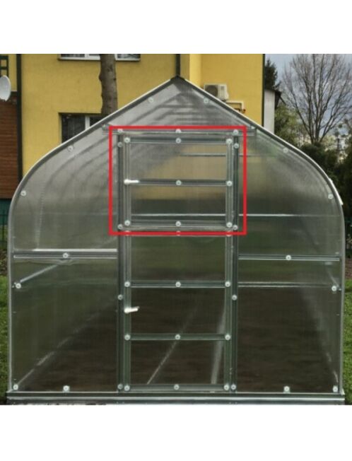 Papildu logs siltumnīcas aizmugurēParedzēts siltumnīcas papildus ventilācijaiIzgatavots no cinkota metālaNepieciešamais papildus polikarbonāta pārklājums 105 2 mPārklājums tiek pasūtīts atsevišķi
