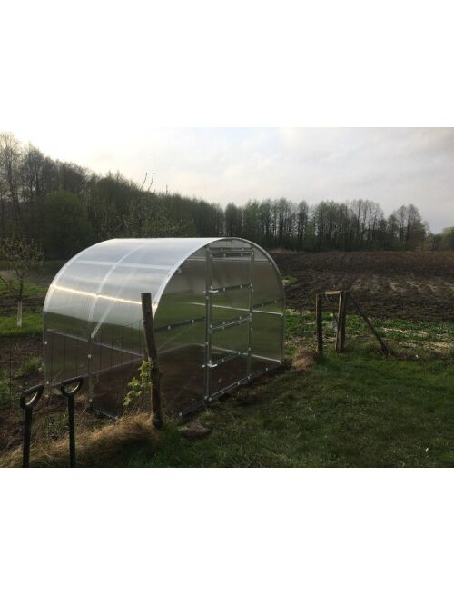 Īpašības: Platums 3 m Garums 2 m Augstums 21 m Karkass Cinkots metāls 1mm biezumā Profils Omega 56 mm plats Attālums starp arkām 1m Skrūves M5 Pastiprinājuma profili arkām Jā Sniega slodze 180 kg/m2 Stiprināšana Katra arka rokās zemā 35cm dziļumā Polikarbonāta biezums 6mm 10 gadu garantija Polikarbonāta stiprināšana Skrūve plastmasas paplāksne D40mm Montāžas instrukcija Ir Durvis 1 gab Divviru Logs 2 gab Lūka ar automātisko atvērēju Atsevišķi pasūtot