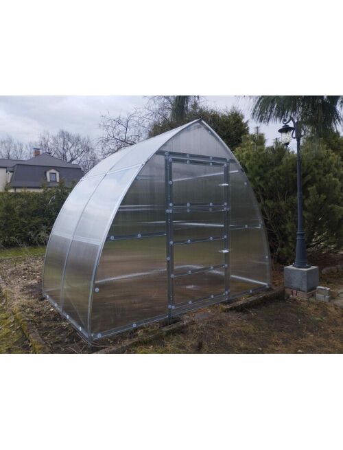 Siltumnīca KLASIKA ARROW Siltumnīca KLASIKA ARROW karkass ir izgatavots no īpaši izturīga cinkota profilēta tērauda profila 56mm biezums 1mm kas iztur lielas sniega slodzes un nodrošina konstrukcijas ilgmūžību. Pateicoties jauna platāka profila izmantošanai siltumnīcai ir samazināts detaļu daudzums kas atvieglo montāžu. Arkas izvietotas ik pēc 99cm. Siltumnīcas vienā galā ir divviru durvis ar vēdināšanas lodziņu un otrā galā vēdināšanas lodziņš. Siltumnīcas KLASIKA ARROW augstums 24m platums 30m. Bāzes garums ir 2 metri bet ar papildus 2 metru pagarinājumu palīdzību siltumnīcas garumu var palielināt līdz pircējam nepieciešamam izmēram. Karkasu nostiprina ierokot karkasa Tveida kājas 35cm zemē. Siltumnīca KLASIKA ARROW ir nokomplektēta arpastiprinātājiem katrai arkai kas nodrošina sniega slodzes noturību. Šim modelim ir iespējams papildus iegādāties jumta lūku ar lūkas automātisko atvērēju plauktu augu iesiešanas komplektu.