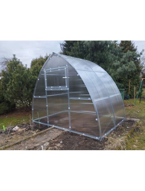 Īpašības: Platums 3 m Garums 2 m Augstums 24 m Karkass Cinkots metāls 1mm biezumā Profils Omega 56 mm plats Attālums starp arkām 099 m Skrūves M5 Pastiprinājuma profili arkām Jā Sniega slodze 240 kg/m2 Stiprināšana Katra arka rokās zemā 35cm dziļumā Polikarbonāta biezums 4mm 10 gadu garantija Polikarbonāta stiprināšana Skrūve plastmasas paplāksne D40mm Montāžas instrukcija Ir Durvis 1 gab Divviru Logs 2 gab Lūka ar automātisko atvērēju Atsevišķi pasūtot
