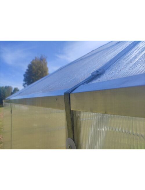 Siltumnīca KLASIKA BERNARD Siltumnīca KLASIKA BERNARD tas ir jaunākais siltumnīcas modelis KLASIKA ģimenē. Siltumnīca KLASIKA BERNARD moderna kompakta klasiskas formas siltumnīca. Metāla profili ir izgatavoti no 78 milimetrus platām 1 mm biezām tērauda sloksnēm kuras tiek komplektētas ar M5 skrūvēm. Komplektā: rāmis grieztas PC loksnes alumīnija folija PC malu aizvēršanai lai pasargātu polikarbonāta kanālu no putekļiem un netīrumiem priekšā divdaļīgas durvis logs no aizmugures. 5 gadu garantija rāmim. Jumta un sienu polikaebonāta loksnes savieno viena ar otru ar speciālu izgatavotu alumīnija profilu. PC loksnes savienojas ar H profiliem.
