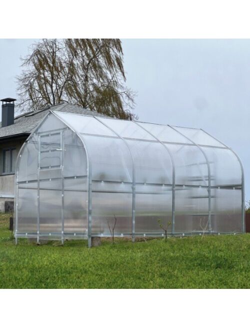 Siltumnīca ir pārklāta ar 4 mm biezu polikarbonātu. Polikarbonāts ir viegls bet īpaši izturīgs materiāls kam raksturīga izturība un lielāka triecienizturība nekā stiklam. Kanāla polikarbonāta pārsegs lieliski saglabā siltumu un siltums turas iekšā pat vēsākā laikā vai naktī. Polikarbonāts ir caurspīdīgs tāpēc ļauj augiem pietiekami daudz saules gaismas vienlaikus nodrošinot aizsardzību pret ultravioletajiem UV stariem pārklājums kalpo ilgāk un neapdedzina augus. Iesakām izvēlēties 6mm pārklājumu tiem kas vēlas veģetācijas sezonu sākt agrāk kad āra temperatūra vēl ir diezgan zema un pabeigt vēlāk.