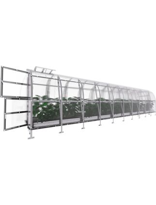 Īpašības: Platums 2 m Garums 10 m Augstums 21 m Karkass Cinkots metāls 1mm biezumā Profils Omega 56 mm plats Attālums starp arkām 1m Skrūves M5 Pastiprinājuma profili arkām Jā Sniega slodze 240 kg/m2 Stiprināšana Katra arka rokās zemā 35cm dziļumā Polikarbonāta biezums 4mm 10 gadu garantija Polikarbonāta stiprināšana Skrūve plastmasas paplāksne D40mm Montāžas instrukcija Ir Durvis 1 gab Divviru Logs 2 gab Lūka ar automātisko atvērēju Atsevišķi pasūtot