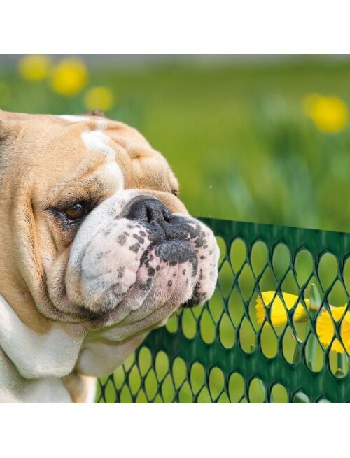 Spēles laikā vai lai norādītu uz viņa dominējošo stāvokli teritorijā jūsu suns var izmīdīt vai noplūkt ziedus un sabojāt puķu dobes un dārza augus. Izmantojot PET FLORET plastmasas sietu jūs varat izveidot nelielu barjeru lai norobežotu teritoriju kurā Jūs nevēlaties lai suns iekļūtu. Šis vienkāršais šķērslis palīdzēs apmācīt suni parādot viņam kur viņš var brīvi skriet un kur viņam tas nav atļauts. Siets ir ar pastiprinātu un gludu malu tas nav toksisks un nekaitē jūsu sunim.