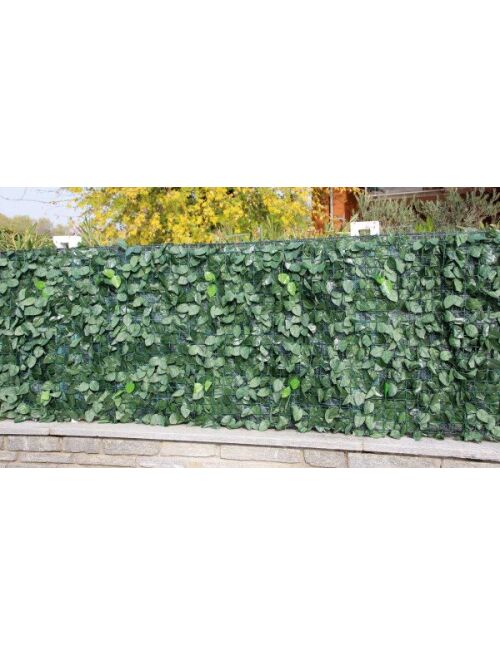 Lai garantētu lielāku privātumu lauru sintētiskais dzīvžogs ir apvienots ar aptverošu austu tīklu kas piedāvā dekoratīvu efektu un aizsargā no nevēlamām acīm. Šim sintētiskajam dzīvžogam ar lauru lapām ir plastiska struktūra kurā ievieto ēnojošo tīklu un lauru lapas. Produkts tiek pārdots ruļļos kurus ir viegli uzstādīt un tas ir lieliski piemērots balkonu terašu un dārzu norobežošanai. Pielietojums: DIVY LAURUS NET dzīvžogs tiek izmantots dažādiem mērķiem: ideāls produkts lai ātri un ar zemām izmaksām dekorētu jebkuru teritoriju kur dzīvā zaļā krāsa nevar augt augsnes gaismas vai ūdens trūkuma dēļ. Ideāli piemērots lai nodrošinātu aizsardzību no nevēlamiem skatieniem. To izmanto lai segtu priekšmetus terases daļas vai sienas. Izmanto lai atjaunotu un dekorētu dārza lapenes un terases. Īpašības: Mākslīgais dzīvžogs ar lauru līdzīgām lapām. Priekšrocības: Tehniskie dati: Izmēri: 15x3m |