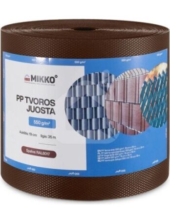 Krāsas: RAL8017 brūnaPlatums: 190 mmBiezums: 550 g/m²Ruļļa garums: 35 mUV izturība: izturīgaMateriāls: PP