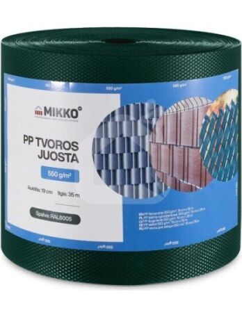 Krāsas: RAL6005 zaļa Platums: 190 mm Biezums: 550 g/m² Ruļļa garums: 35 m UV izturība: izturīga Materiāls: PP |