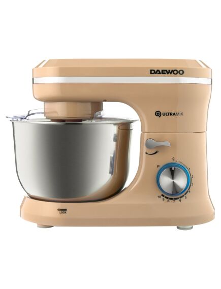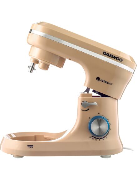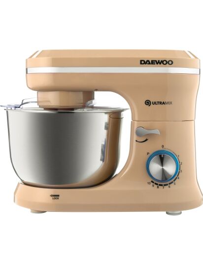 | Планетарный миксер Daewoo DHM 150R с чашей, 1600 Вт, 10 скоростей, объем чаши 4,5 л, венчик, крюк для теста, насадки для смешивания, кремовый цвет.