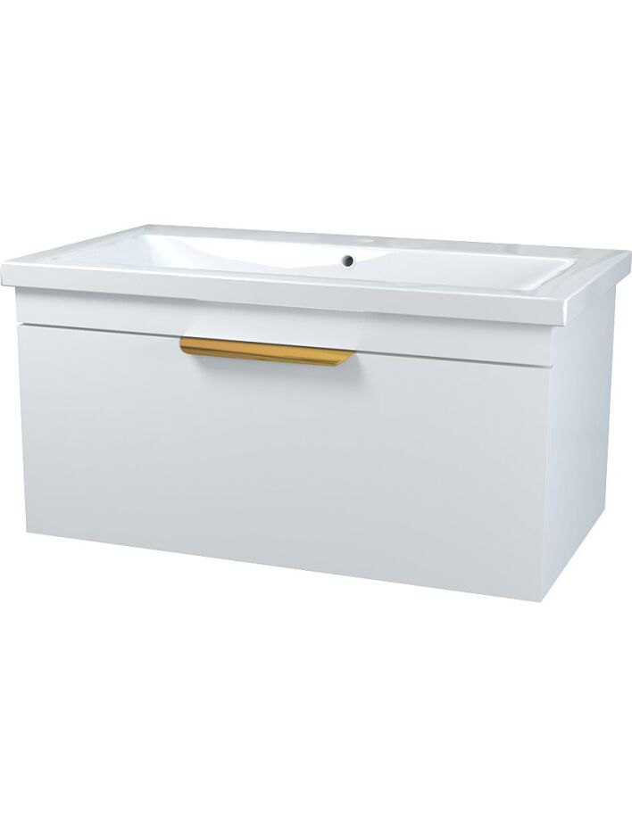 Sanservis Тумба подвесная Katalonija-100 в комплекте с умывальником Como 100 белая с золотыми ручками