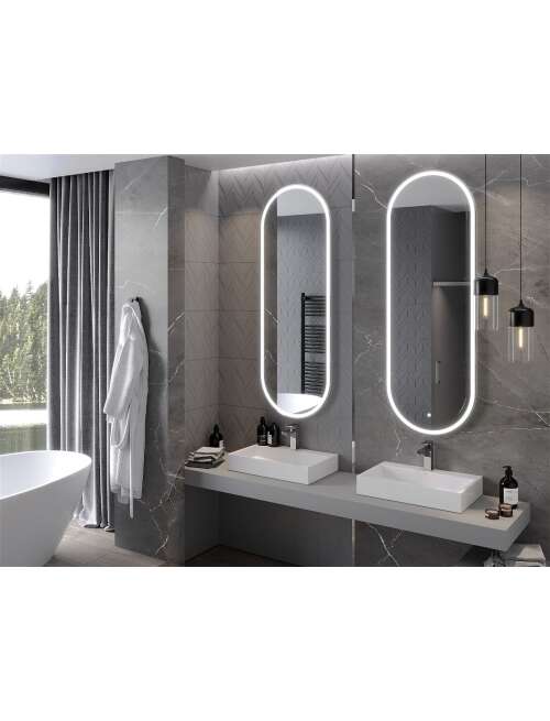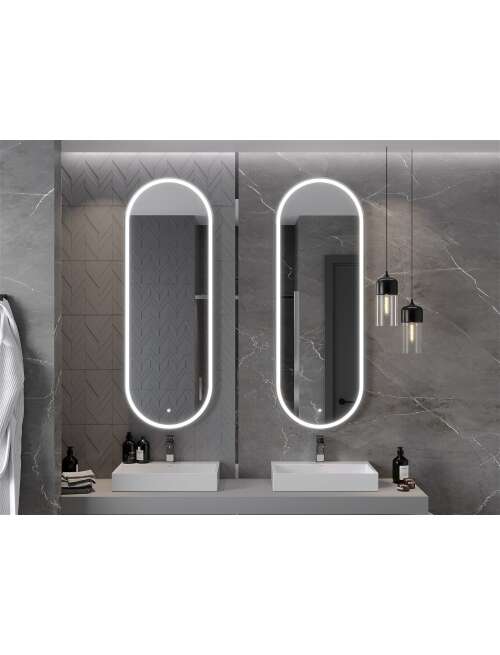Dane techniczne: Rozmiar: 55 x 155 cm Głębokość: 29 mm Grubość szkła: 4 mm Włącznik podświetlania: Dotykowy Barwa LED: Zimna - 6000K Liczba diod LED: 60/mb Zużycie energii: 4,8 W/mb Napięcie wejściowe: 230 V Klasa energetyczna: F (dawniej A+) Stopień ochrony: IP44 & certyfikat CE Lustro posiada mate grzewczą, która po włączeniu zapobiega powstawaniu pary Zasilanie przygotowane do podłączania pod instalację elektryczną w ścianie |