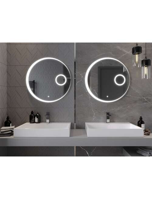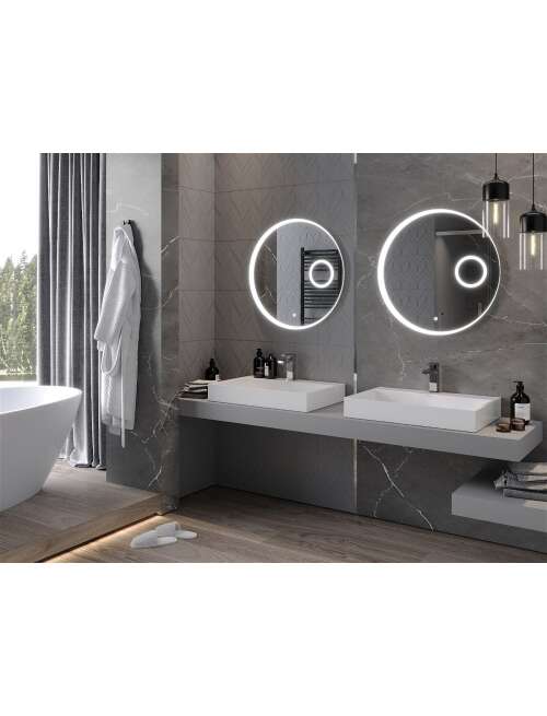 Dane techniczne: Rozmiar: 70 x 70 cm Głębokość: 25 mm Grubość szkła: 4 mm Włącznik podświetlania: Dotykowy Barwa LED: Zimna - 6000K Liczba diod LED: 60/mb Zużycie energii: 4,8 W/mb Napięcie wejściowe: 230 V Klasa energetyczna: F (dawniej A+) Stopień ochrony: IP44 & certyfikat CE Lustro posiada mate grzewczą, która po włączeniu zapobiega powstawaniu pary Dodatkowe lusterko kosmetyczne LED z 3-krotnym powiększeniem Zasilanie przygotowane do podłączania pod instalację elektryczną w ścianie |