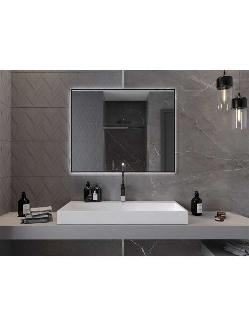 Mexen Erma lustro łazienkowe podświetlane 100 x 80 cm, LED 6000K, antypara, rama czarna - 9814-100-080-611-70
