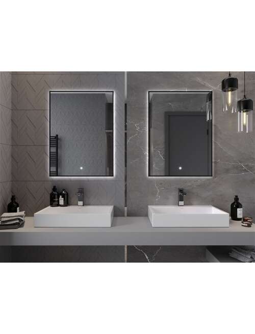 Mexen Erma lustro łazienkowe podświetlane 60 x 80 cm, LED 6000K, antypara, rama czarna - 9814-060-080-611-70