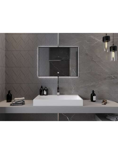 Mexen Erma lustro łazienkowe podświetlane 80 x 60 cm, LED 6000K, antypara, czarna rama - 9814-080-060-611-70