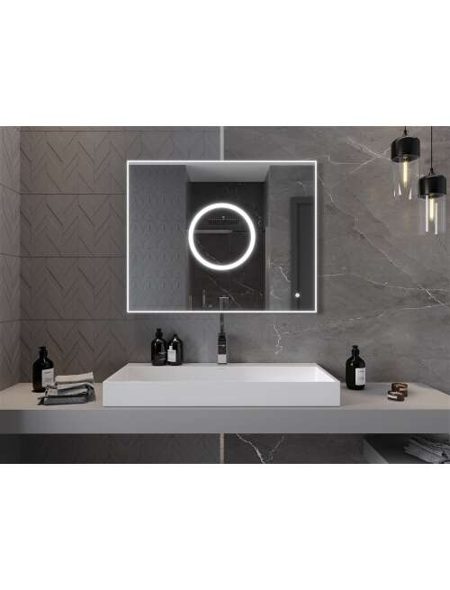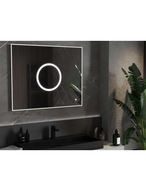 Dane techniczne: Rozmiar: 100 x 80 cm Głębokość: 25 mm Grubość szkła: 4 mm Włącznik podświetlania: Dotykowy Barwa LED: Zimna - 6000K Liczba diod LED: 60/mb Zużycie energii: 4,8 W/mb Napięcie wejściowe: 230 V Klasa energetyczna: F (dawniej A+) Stopień ochrony: IP44 & certyfikat CE Lustro posiada mate grzewczą, która po włączeniu zapobiega powstawaniu pary Zasilanie przygotowane do podłączania pod instalację elektryczną w ścianie |